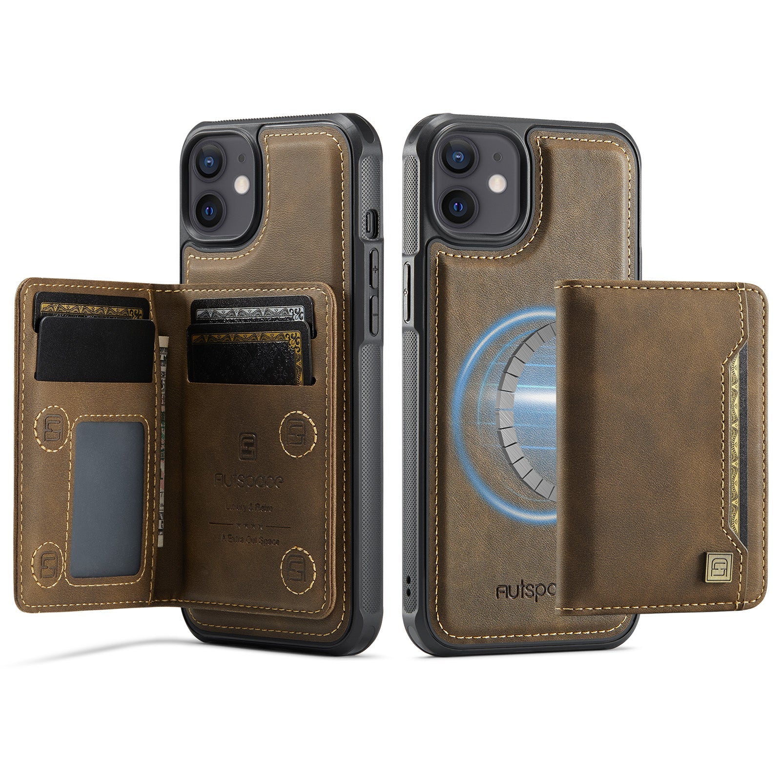 New 2-IN-1 RFID Blocking Card Holder Wireless Charging Leather Phone Case for iPhone
