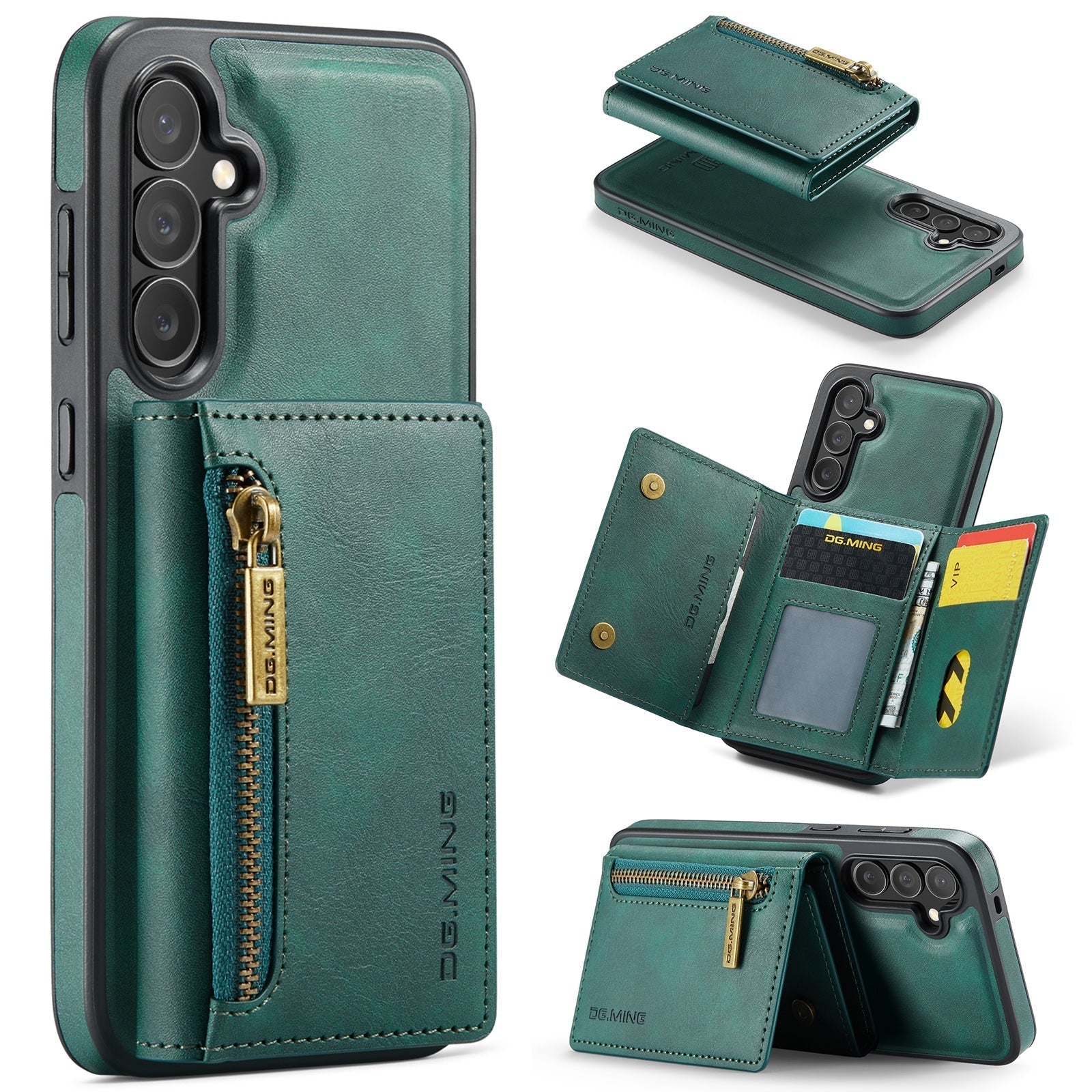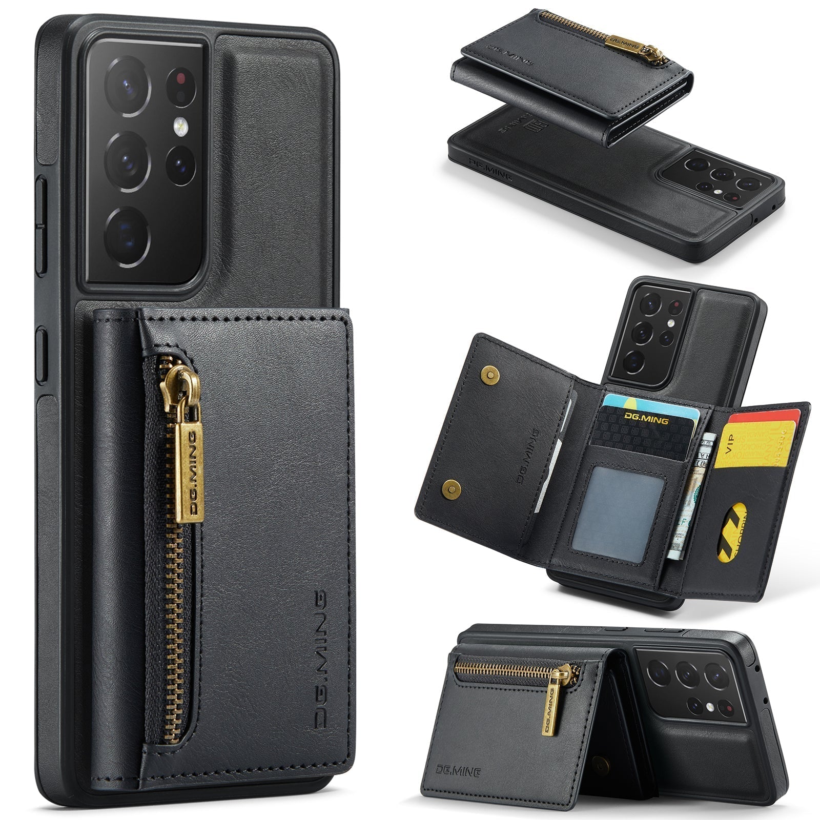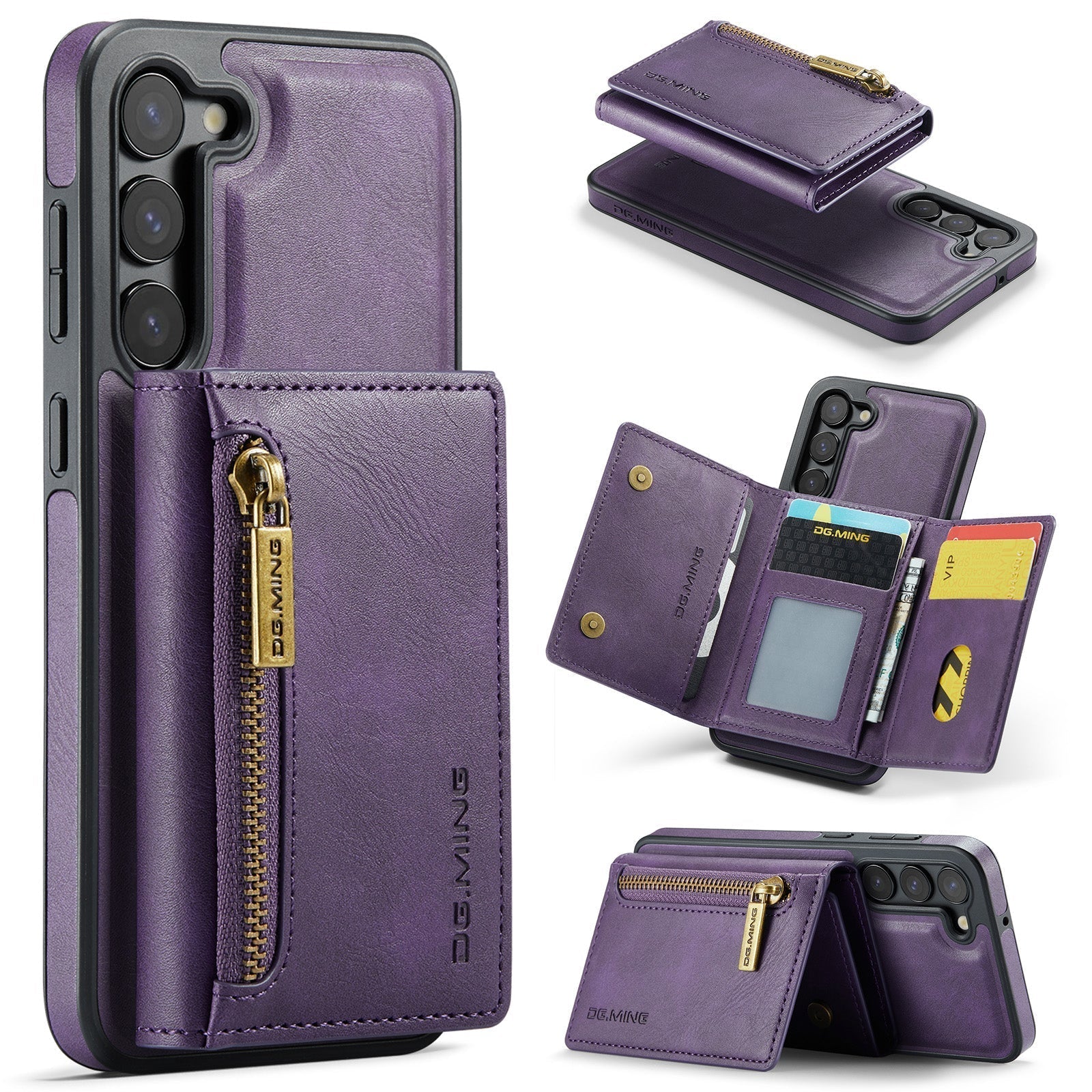 New 2-IN-1 RFID Blocking Zipper Wallet Card Holder Leather Phone Case for Samsung